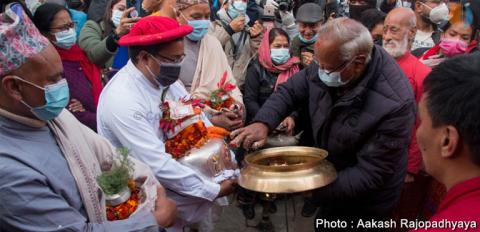 पौष शुक्ल पूर्णिमाको दिनमा भक्तपुर जिल्लाको चाँगुनारायणबाट हनुमानढोकासम्म कलश यात्रा गराउने परम्पराकै निरन्तरतास्वरूप दायाँबायाँ लक्ष्मी र सरस्वतीको कलशसँगै चाँगुनारायणको कलशलाई हनुमानढाेका ल्याइएकाे हाे ।