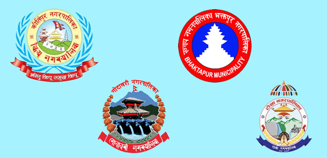 नेपालमण्डलका कीर्तिपुर, गोदावरी, भक्तपुर, टोखा नगरपालिकाहरुले आफ्नो लोगोमा नेपाल सभ्यता झल्कीने गरी लोगोको माथिल्लो भागमा खस (नेपाली) भाषामा नगरपालिकाको नाम र तल्लो भागमा नेपाल भाषा रञ्जना लिपि प्रयोग गरिएको पाइन्छ ।