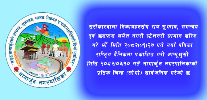 नेपालको संविधान २०७२ प्रस्तावनाको मूल भावना एवं धारा ३ मा बहुजातीय, बहुभाषिक, बहुधार्मिक, बहु सांस्कृतिक विशेषतायुक्त सबै नेपाली जनता समष्टिमा राष्ट्र हो भनी उल्लेख भएको छ । तापनि नागार्जुन नगरपालिकाले संविधानको मूल मर्म विपरीत सरोकारवाला निकायहरुसंग राय सुझाव, समन्वय एवं छलफल समेत नगरी स्टेशनरी सामान खरिद गरे झैंं मिति २०८२।०१।२७ गते नयाँ पत्रिका राष्ट्रिय दैनिकमा प्रकाशित गरी आफूखुसी मिति २०८२।०३।१० गते नागार्जुन नगरपालिकाको प्रतिक चिन्ह (लोगो) सार्वजनिक गरेको छ ।