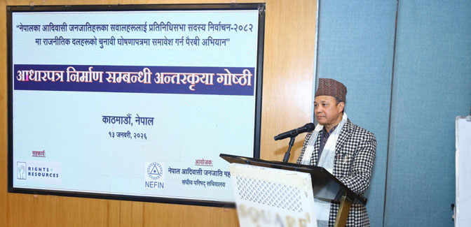 सबै राजनीतिक दलको चुनावी घोषणापत्रमा अटाउनेगरी आदिबासीको सवाललाई सुझावका आधारमा आधारपत्र तयार गरिने नेफिनले जनाएको छ ।
