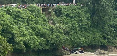 त्रिशुलीमा बस खस्दा ८ को मृत्यु